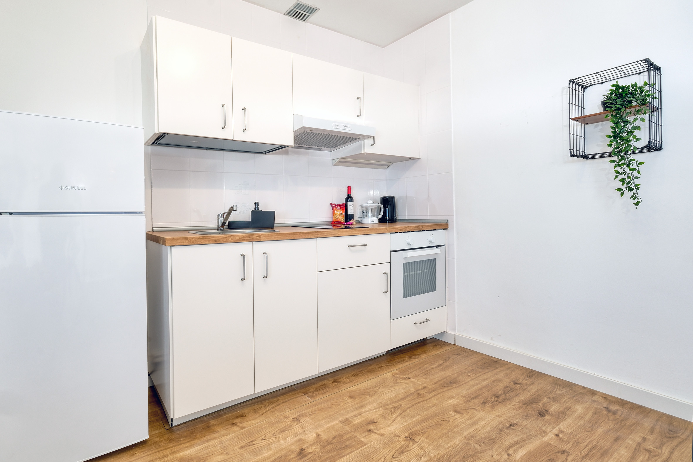 La cocina está totalmente equipada con electrodomésticos modernos, incluyendo nevera, congelador, lavadora, horno, microondas, cafetera, tostadora, hervidor y exprimidor. Encontrarás todos los utensilios de cocina necesarios para preparar deliciosas comidas durante tu viaje. Además, el apartamento ofrece conexión WiFi gratuita y una televisión para momentos de entretenimiento.