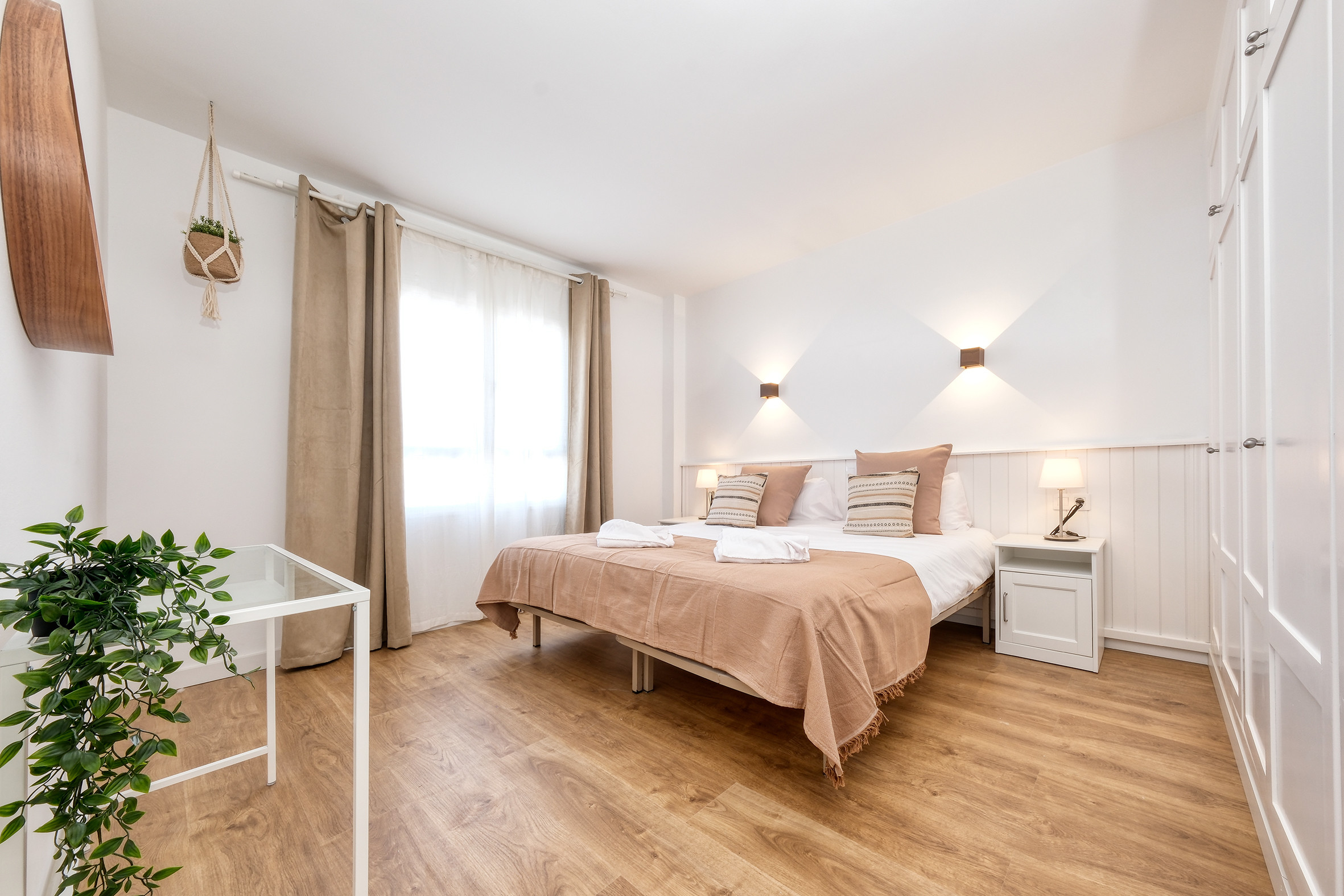 El apartamento cuenta con un dormitorio principal equipado con una cama doble y un sofá-cama adicional, permitiendo alojar cómodamente hasta 4 personas. La distribución inteligente del espacio garantiza privacidad y confort durante su estancia.
