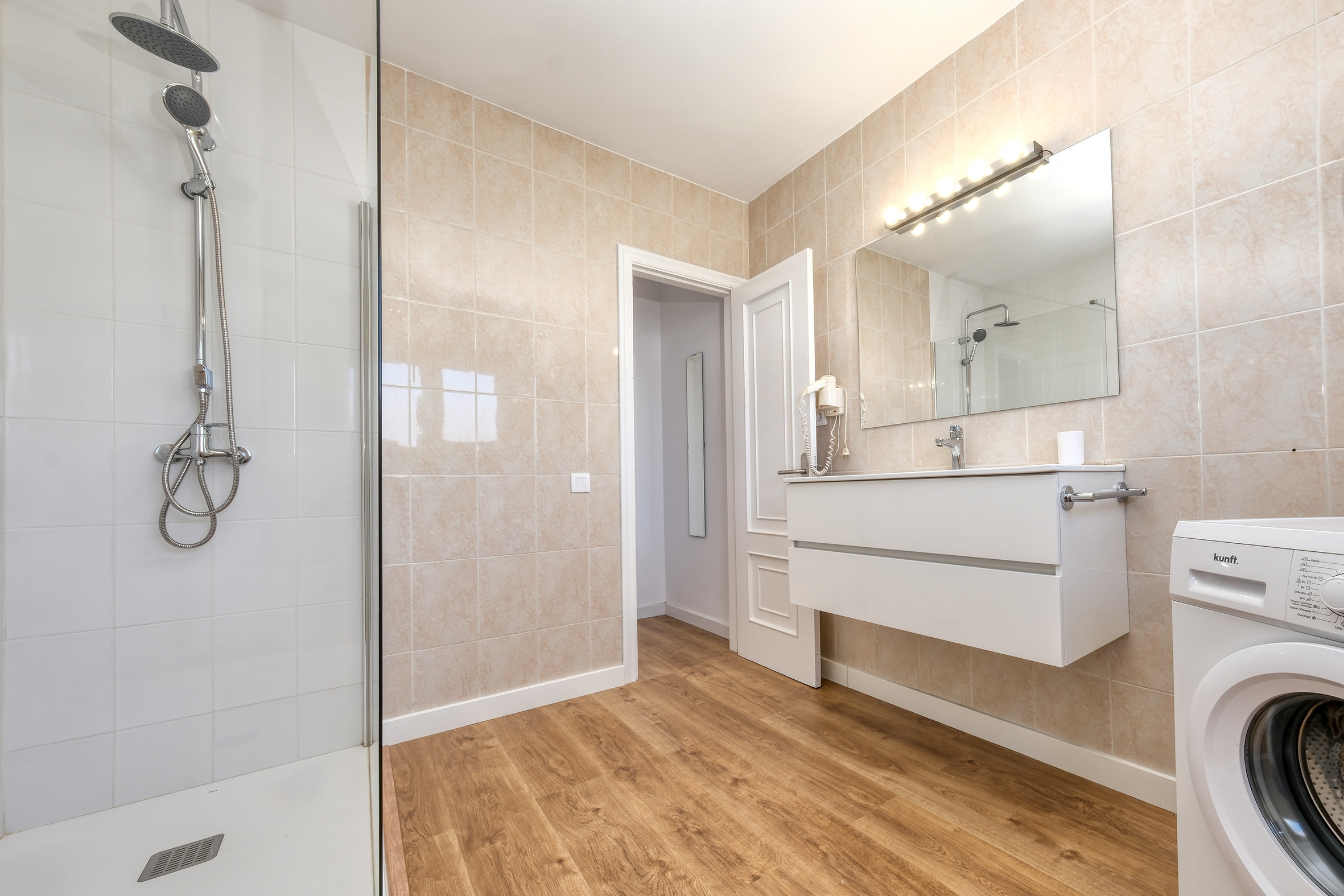 El baño, amplio y luminoso, está equipado con plato ducha y secador de pelo. Se proporciona también un juego de toallas (una grande y una pequeña) por persona.