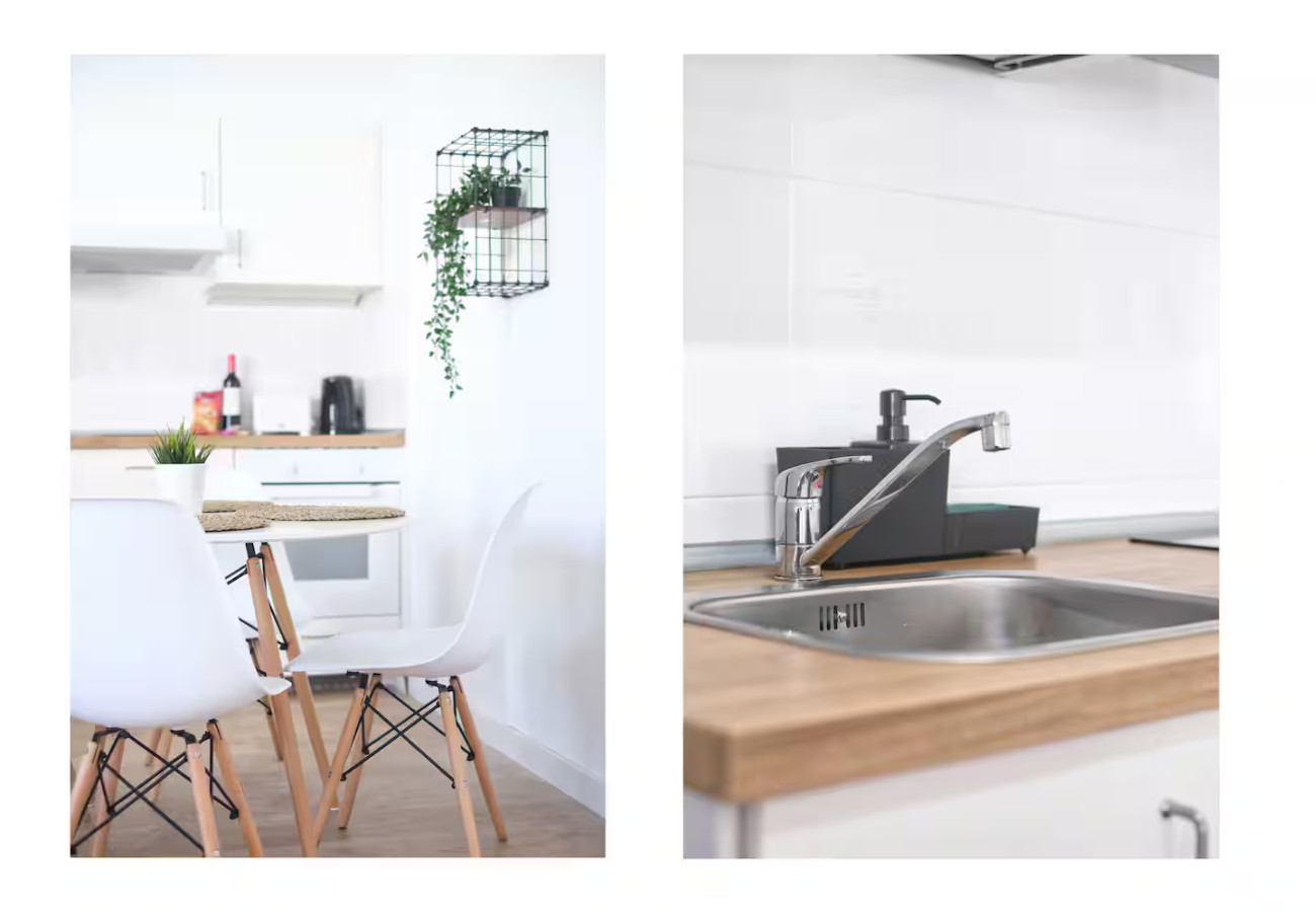 La cocina está totalmente equipada con electrodomésticos modernos, incluyendo nevera, congelador, lavadora, horno, microondas, cafetera, tostadora, hervidor y exprimidor. Encontrarás todos los utensilios de cocina necesarios para preparar deliciosas comidas durante tu viaje. Además, el apartamento ofrece conexión WiFi gratuita y una televisión para momentos de entretenimiento.