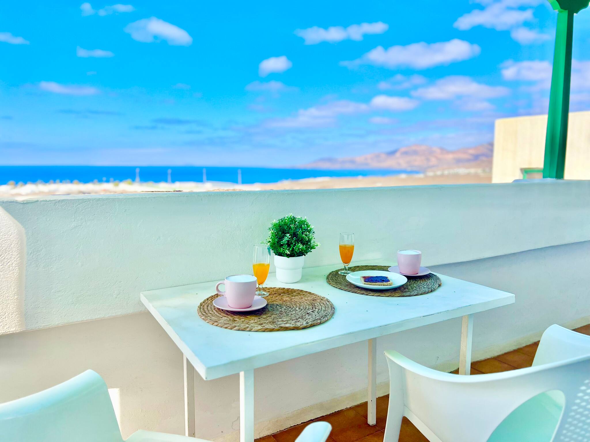 Vista Paraíso está diseñado para que te sientas completamente a gusto: estancias luminosas, espacios cuidadísimos, camas listas para el descanso y rincones acogedores donde relajarte, leer un libro o mantenerte conectado con los tuyos gracias al wifi más rápido. La terraza invita a largas sobremesas al aire libre y a contemplar el espectáculo diario del sol escondiéndose en el horizonte.