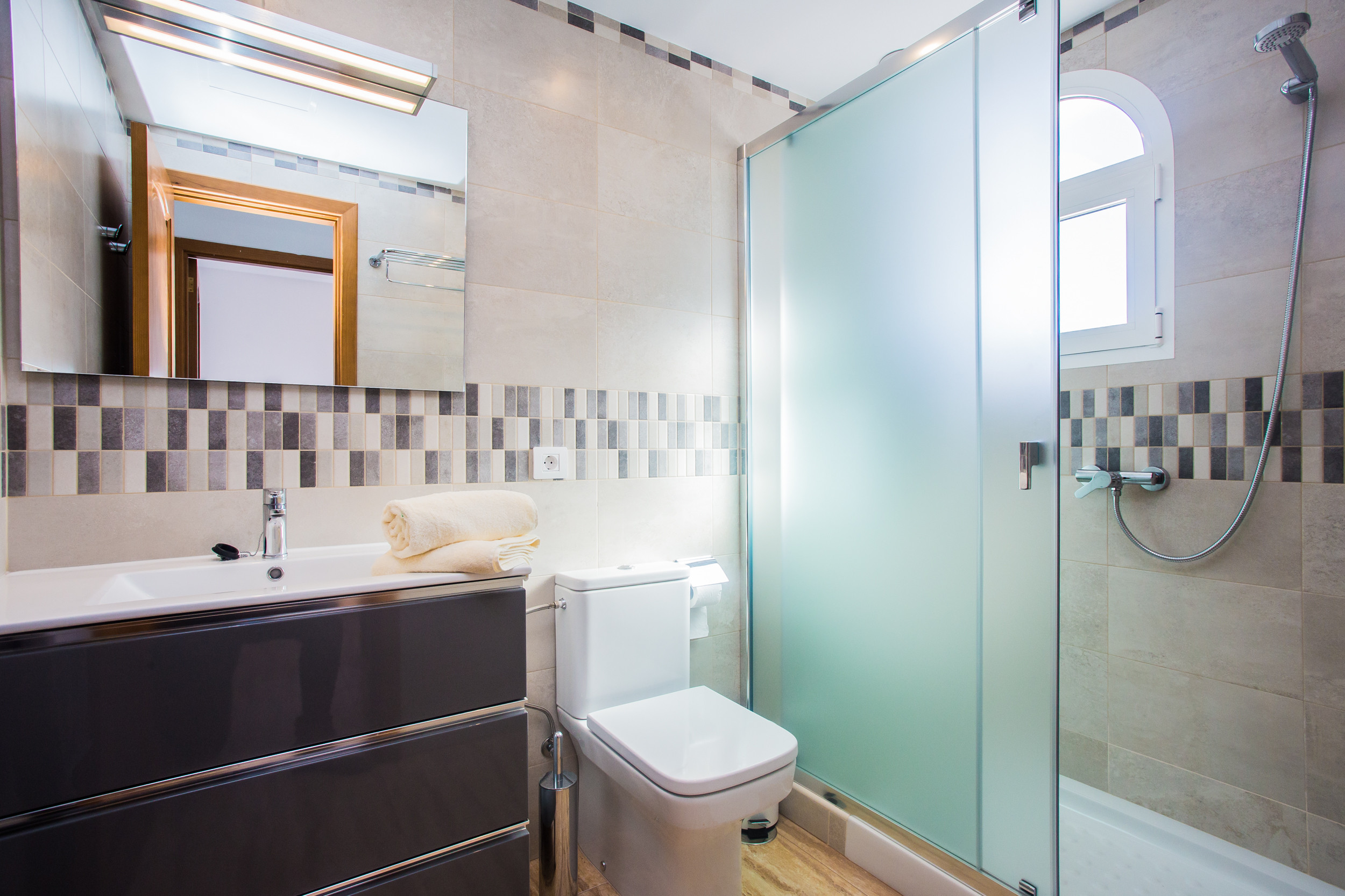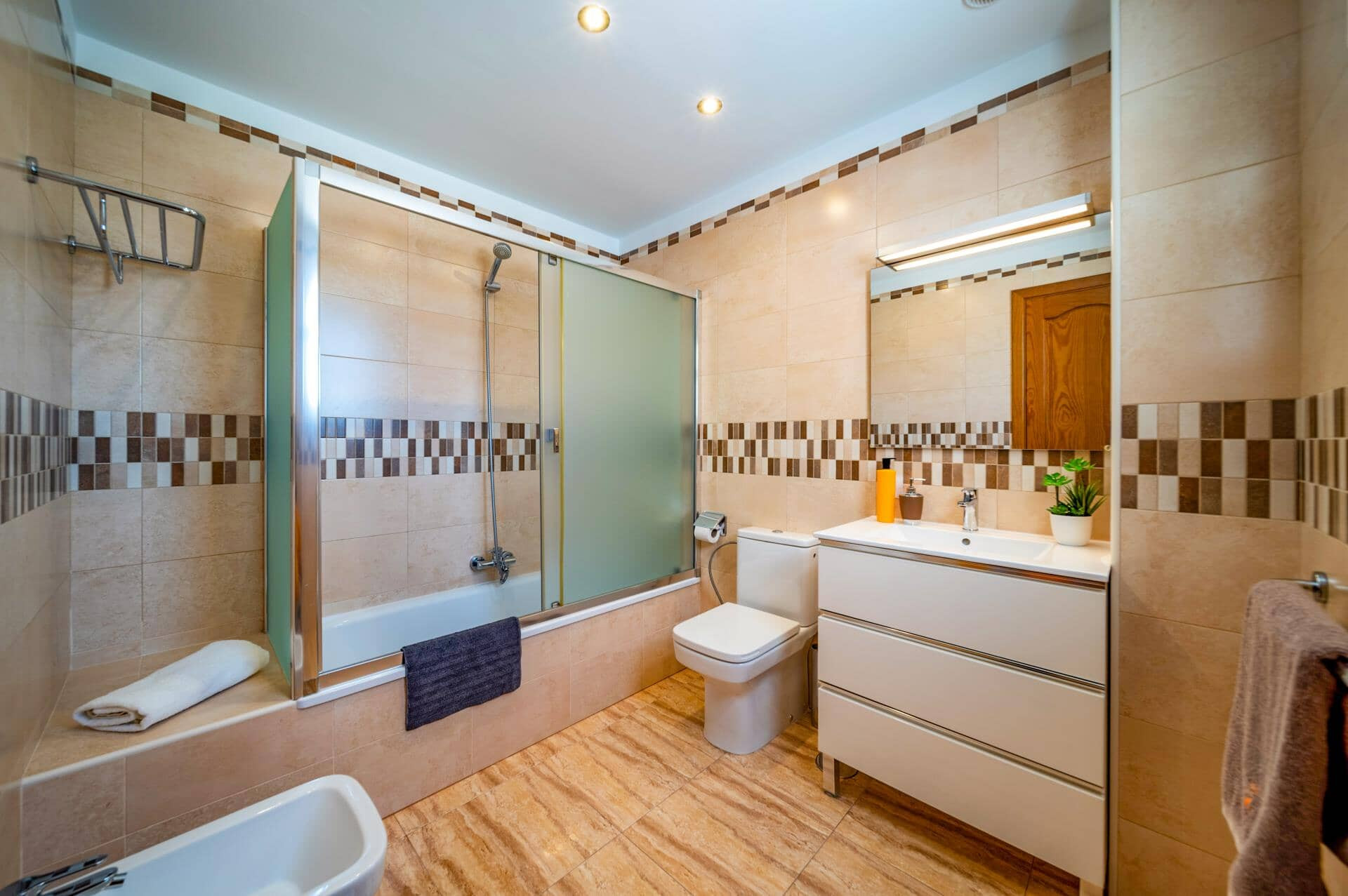 Hay tres baños para que nadie tenga que hacer cola, WiFi para no perderse nada, dos televisores por si llueve (que no suele pasar) y hasta caja fuerte para irte a explorar con total tranquilidad.