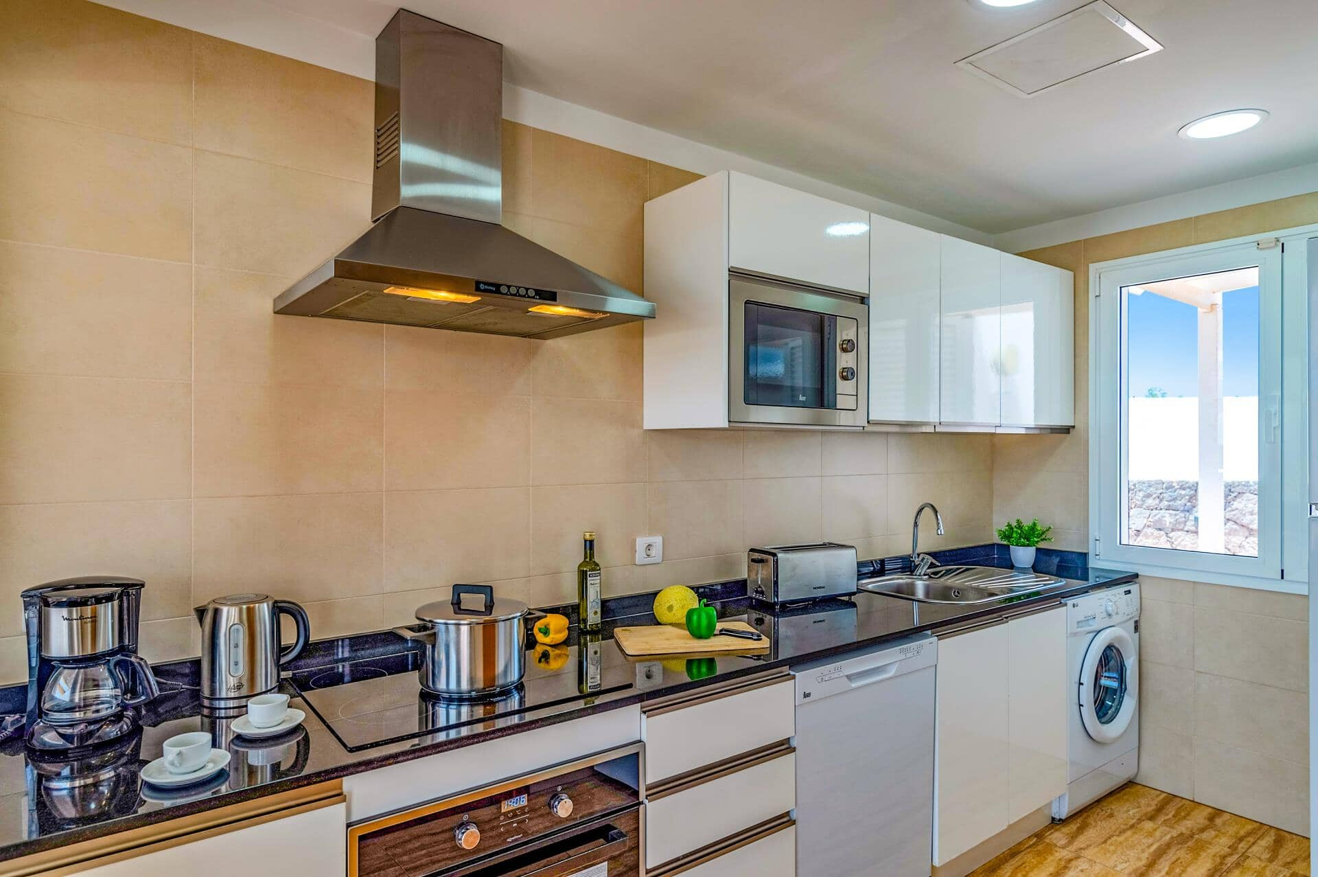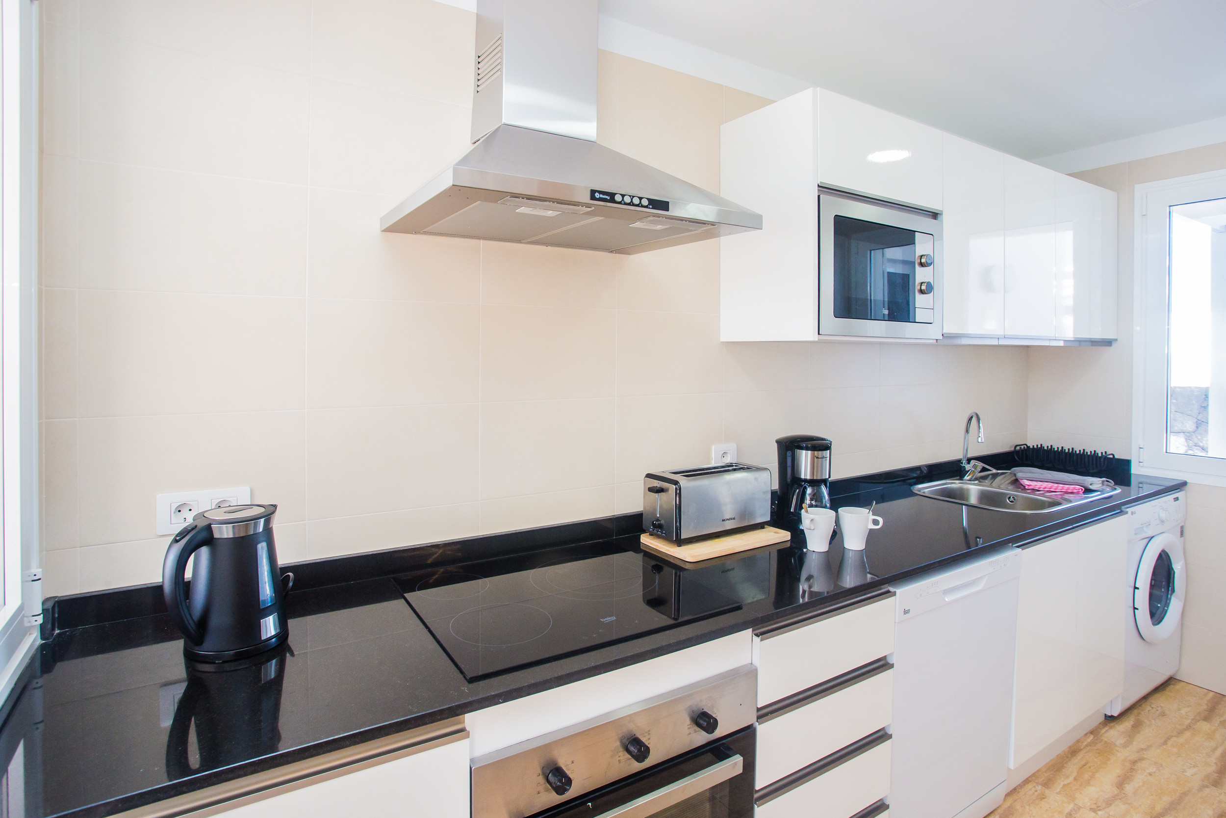 Si te gusta cocinar, la cocina te da libertad y de todo para preparar desayunos interminables o cenas improvisadas después de un día de playa. Y si no apetece mover un dedo, en los alrededores hay restaurantes para todos los gustos, además de un Aldi al ladito para lo que te falte.