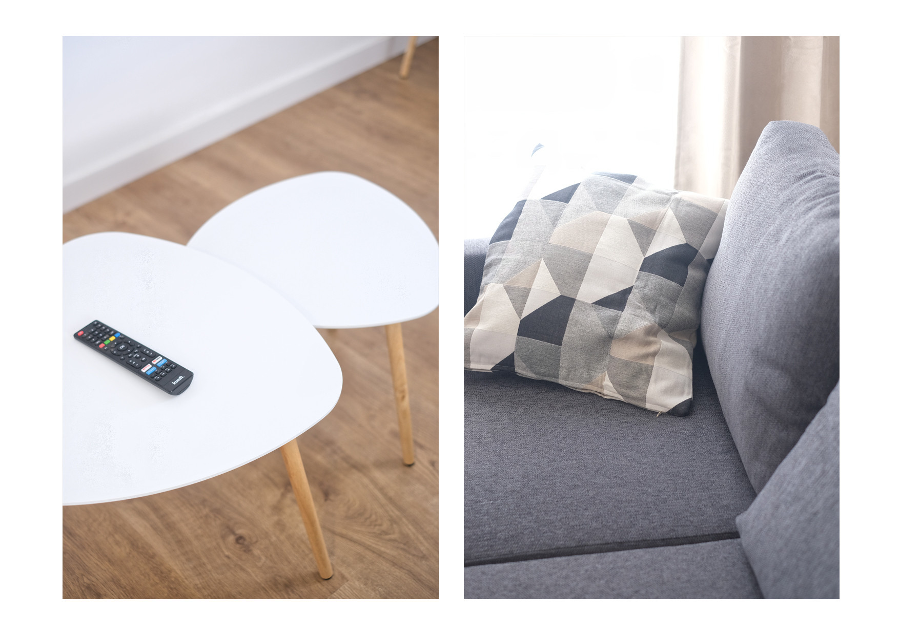 The apartment has two well-distributed bedrooms: a main bedroom with a double bed and another with two single beds, as well as an additional sofa bed that allows comfortably accommodating all family members. The rest area is equipped with a safe to store valuable items and an iron to keep your clothes impeccable.